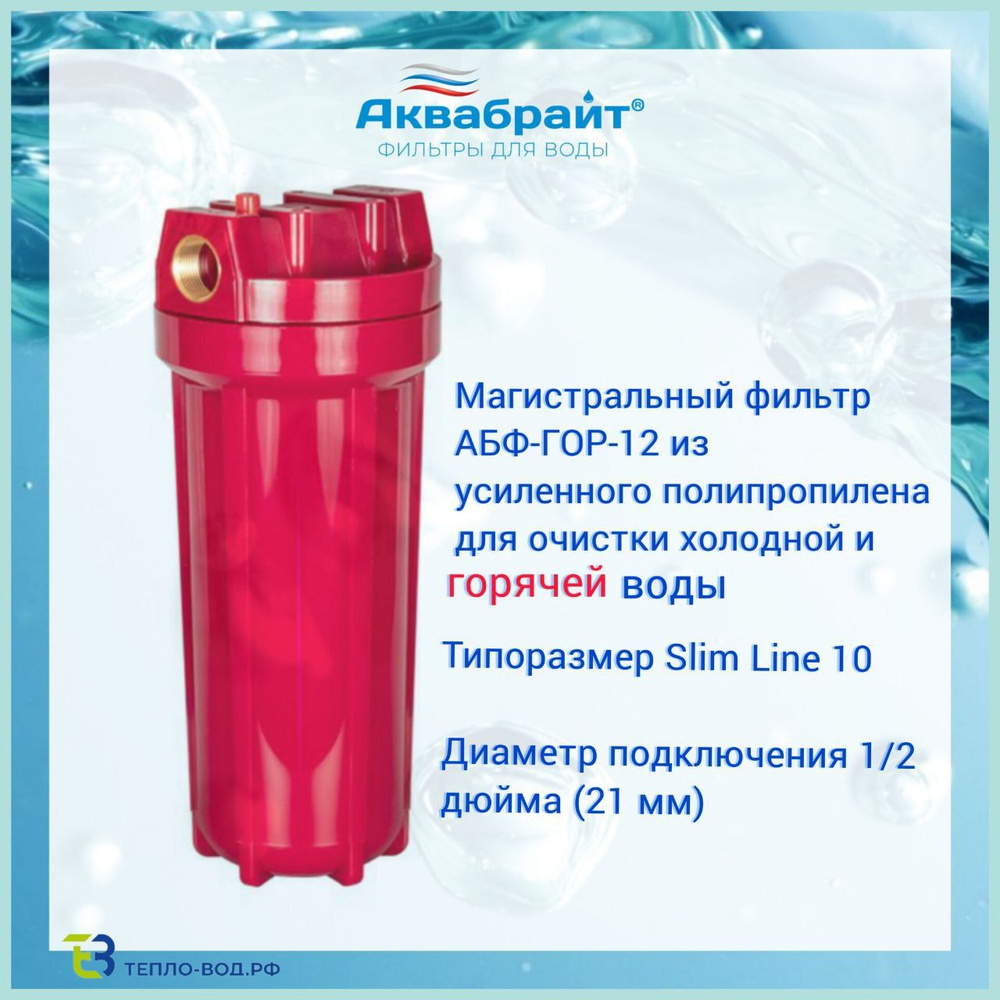 Колба 10" Slim 1/2" АКВАБРАЙТ АБФ ГОР для горячей воды